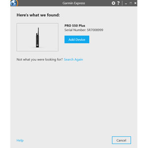 5. Once Garmin Express has found your device, it will appear on the screen. Click the "add device" icon.