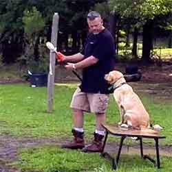 This launcher greatly helps with dogs that when training don't break, but on gun shot they do. It also helps with getting your dog to run longer retrieve. I was throwing dummies and my lab was getting used to stopping about 30 yards out before you had to start casting here.