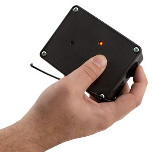 4. Press the red button on the transmitter one time. The light on the receiver will turn back to red indicating the signal was received.