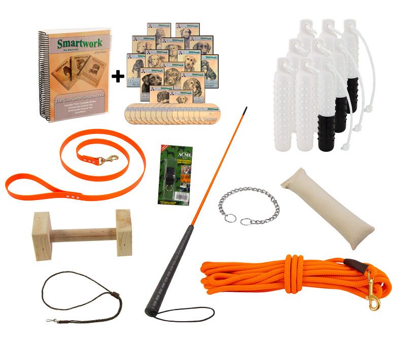 OPTIONAL Garmin PRO 550Complete Smartwork BookSmartwork Complete DVD SetPAC Regular DummiesLong Canvas Puppy DummyScott Medium Heavy Choke Chain6' Big Dawg Biothane Snap LeadDouble Braided Check Cord 5/16" x 30 ft.Acme Thunderer WhistleMendota Premium Solid Braid Single Snap Lanyard Wooden Force Training BuckSportDOG Deluxe Heeling Stick