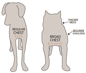 Broad Chest Vest on MannequinDog Vest Chest ViewDog Vests Back ViewDog Vest Laid FlatDog Vest Regular vs BroadDog Vest Regular vs BroadDog Vest In Use w/ Diagram